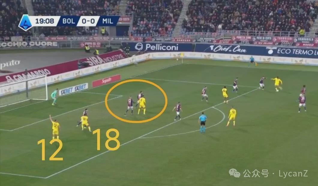 只要破开或者绕过博洛尼亚第一线伐木式的防守,对手的后卫根本对位不了米兰这套临时拼凑的锋线,在有限能拿好一点的机会里,后续无论是锋线自己配合或者分边路直接传中,都能产生足够威胁。