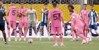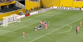 第54分钟,梅西主罚禁区前沿任意球,皮球越过人墙打进球门右侧,2比1!迈阿密逆转比分!